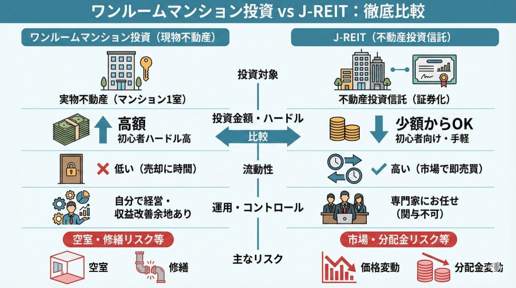 【不動産FPが解説】ワンルームマンション投資とREIT(リート)はどっちがおすすめ?リスクと収益性を徹底比較